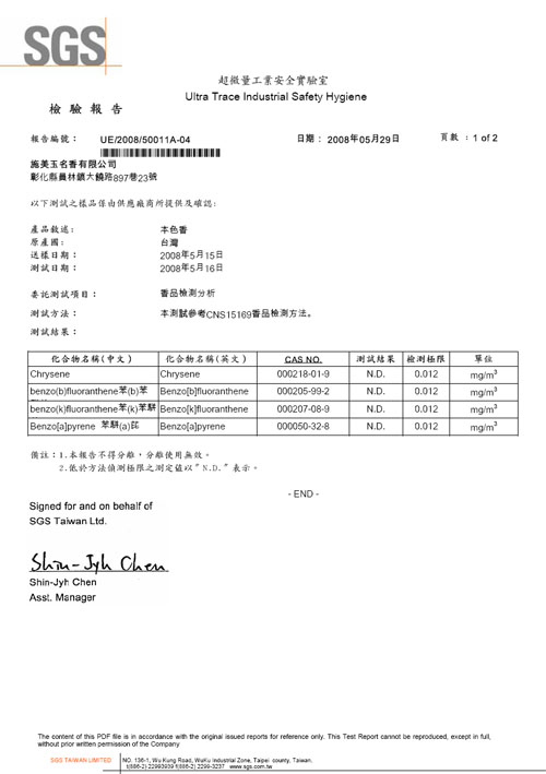 施美玉名香有限公司 彰化縣員林鎮大明里大饒路897巷23號 施 美 玉 製 香 廠 TEL:04-8321334 04-8322344 FAX:04-8355410